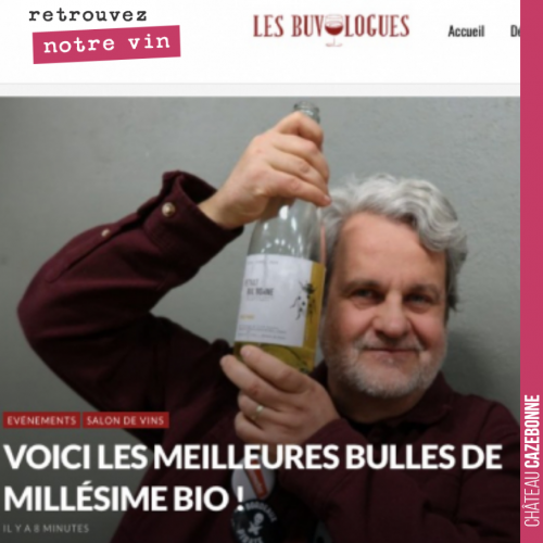 Notre bulle Bul’bonne à la une du magazine Les Buvologues et chroniquée comme l’une des meilleures bulles de MillesimeBio. Cela fait toujours plaisir ! Merci Guillaume Baroin d’être venu goûter !