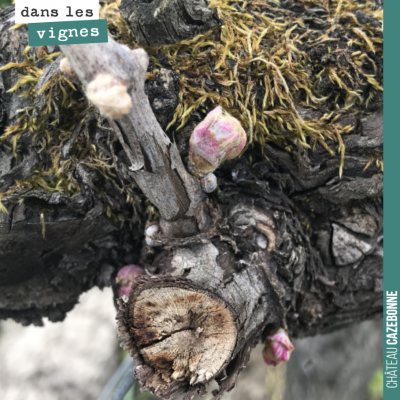 Après le gel, les porte-greffes repartent de plus belle. Ici une inflorescence qui donnera une fleur, mais pas de fruit. Nous grefferons ce porte-greffe l’année prochaine. Magique !